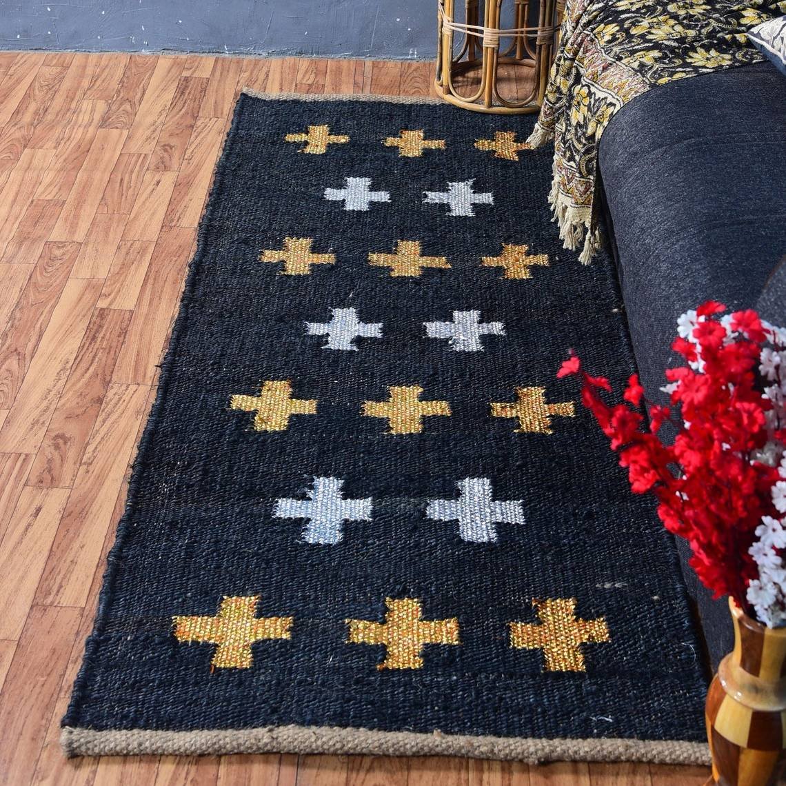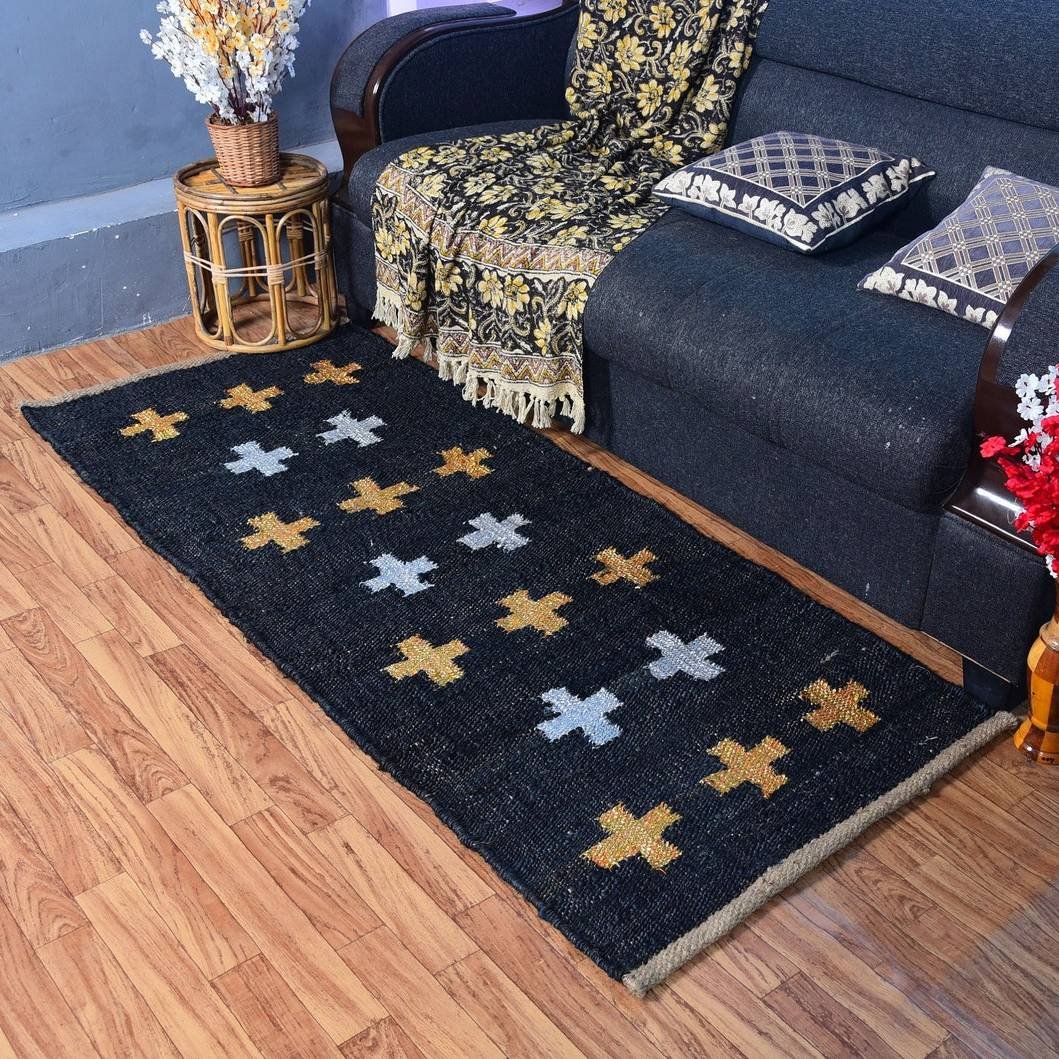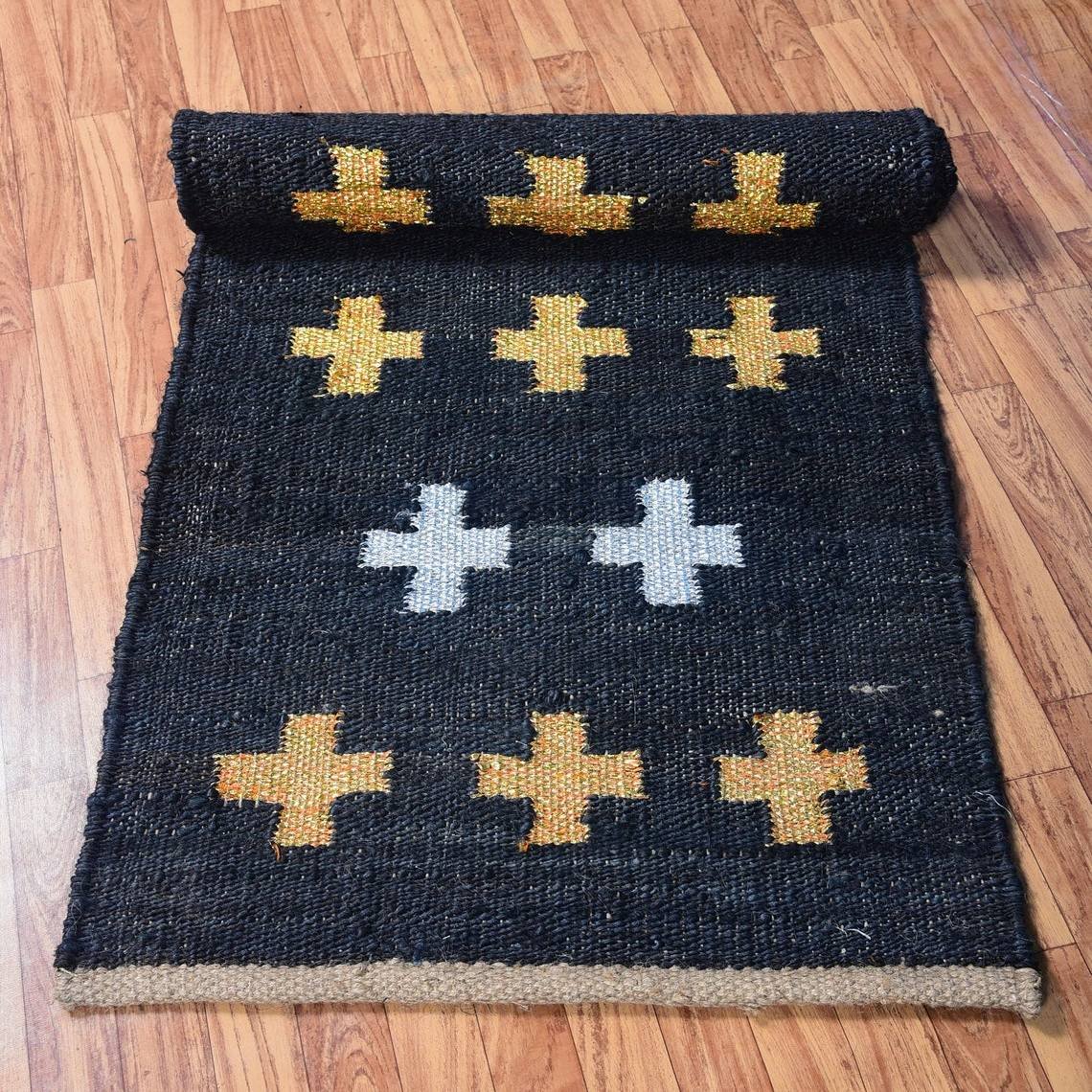 Elevate your space with the unique charm of this handmade hemp and jute cross rug